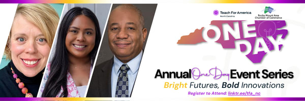 In partnership with the Rocky Mount Area Chamber of Commerce, Teach For America brings you the annual "One Day" Event Series that unites community leaders, celebrates the brilliance of North Carolina students, and honors the lasting impact of Teach For America educators.