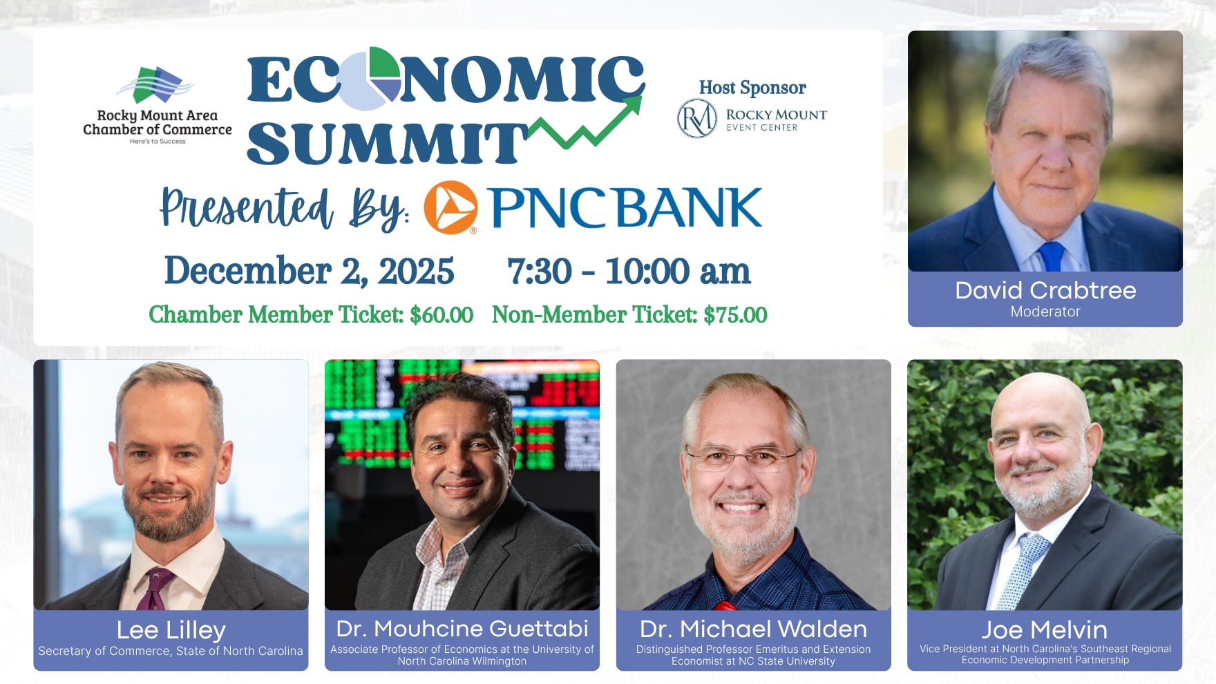 Join us on December 2, from 7:30 to 10 AM at the Rocky Mount Event Center for an engaging discussion on local, regional, and national economic activities, trends, and expectations. Our Chamber Economic Summit provides valuable insights to guide your business and community forward.