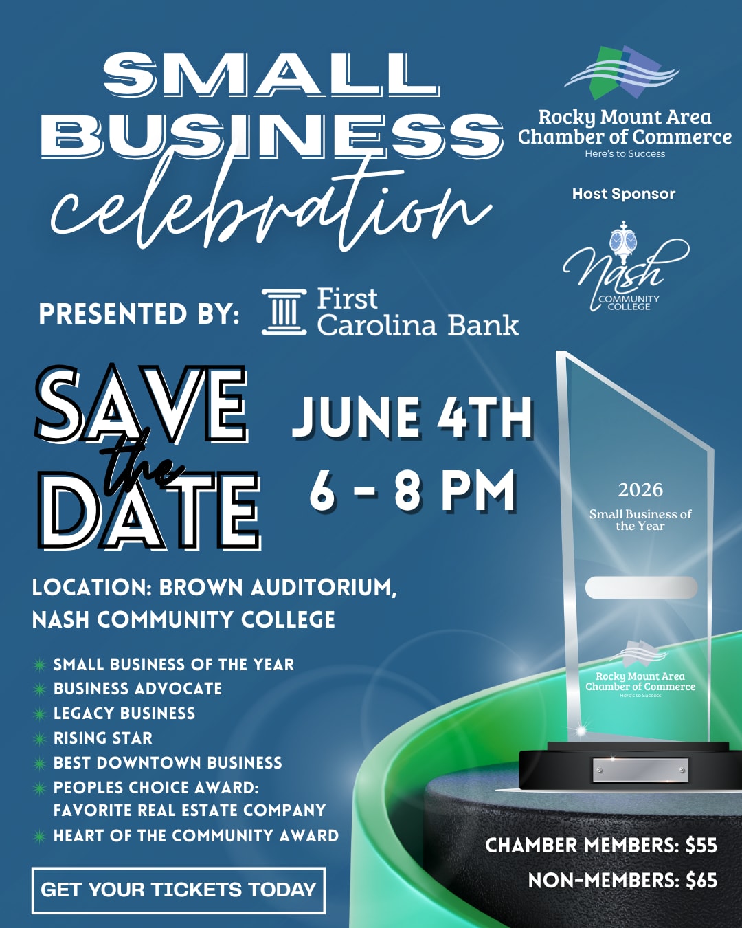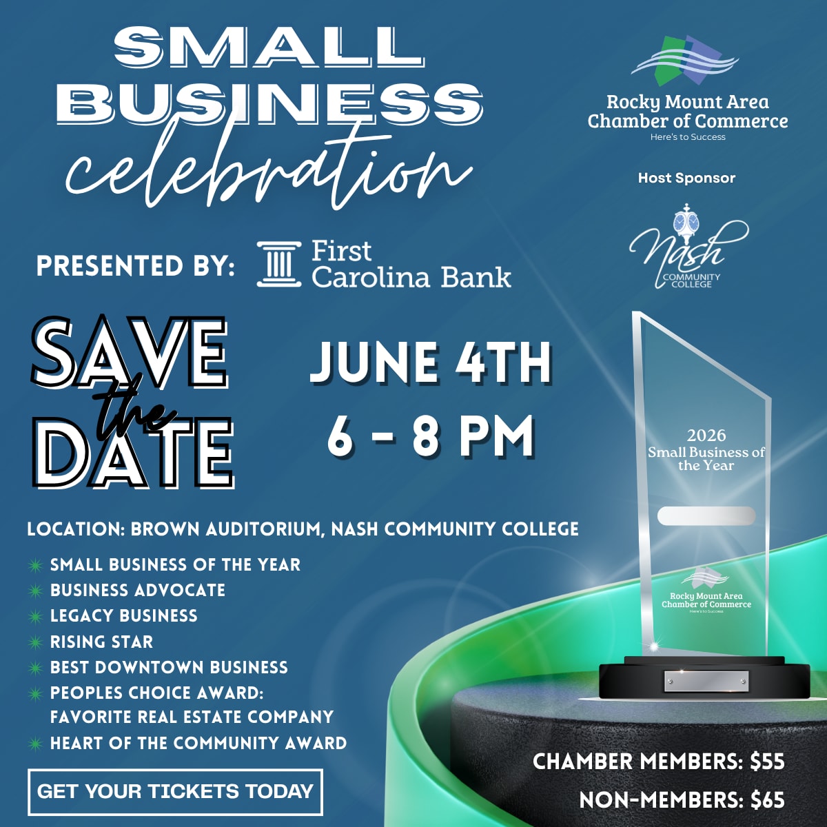 Come help us celebrate as we provide several awards to local small businesses. This is truly THE networking event of the year.