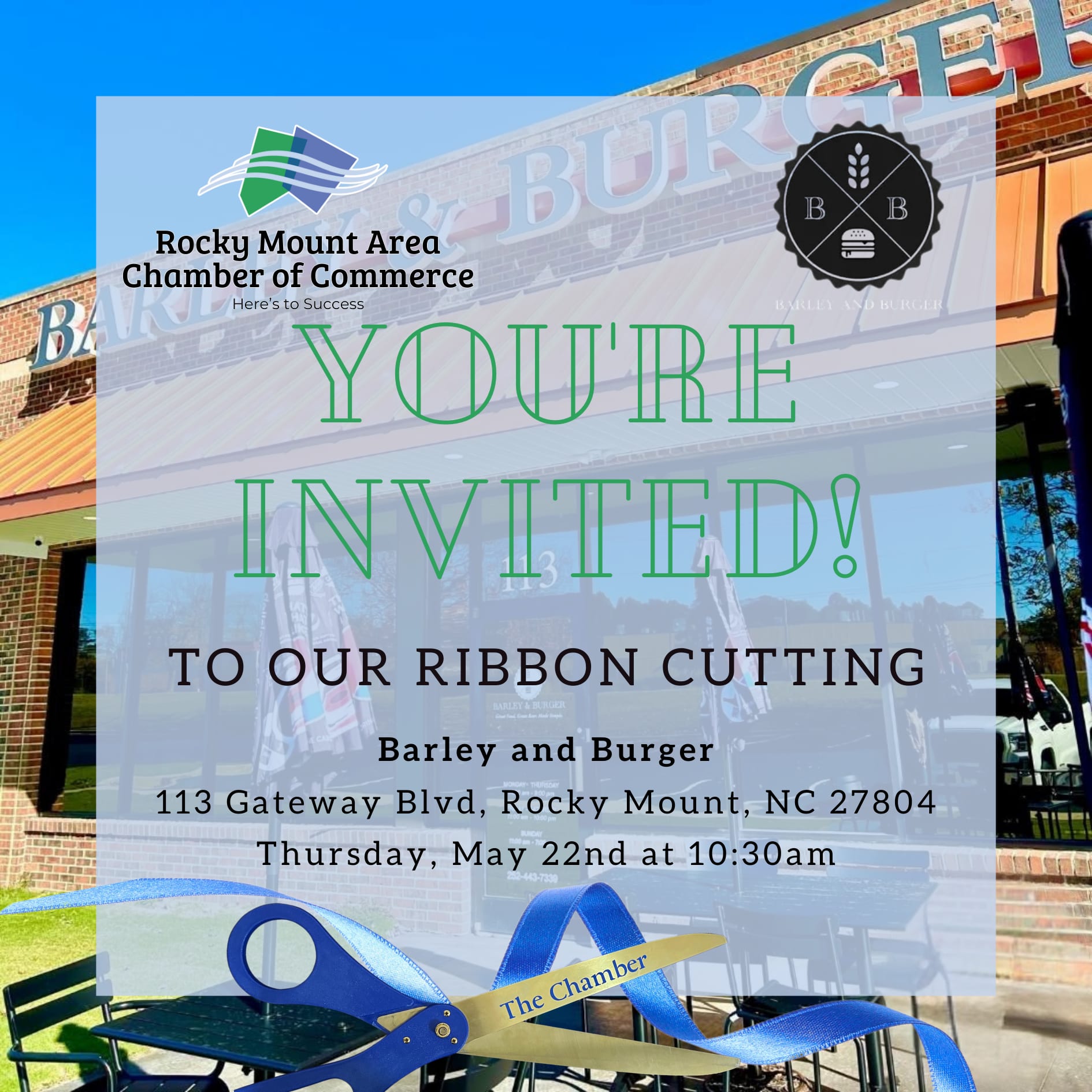 Join us as we celebrate Barley & Burger's brand-new location with a Ribbon Cutting Ceremony!