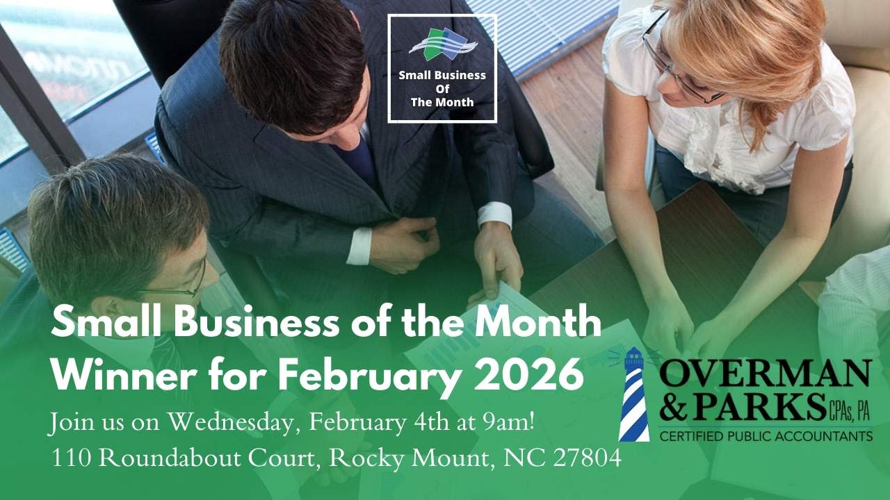 Join us in celebrating Overman & Parks as our Small Business of the Month for February 2026 on Wednesday, February 4th, at 9 AM at 110 Roundabout Ct in Rocky Mount, NC 27804. Let's come together to recognize this outstanding local small business and show our support. We can't wait to see you there!