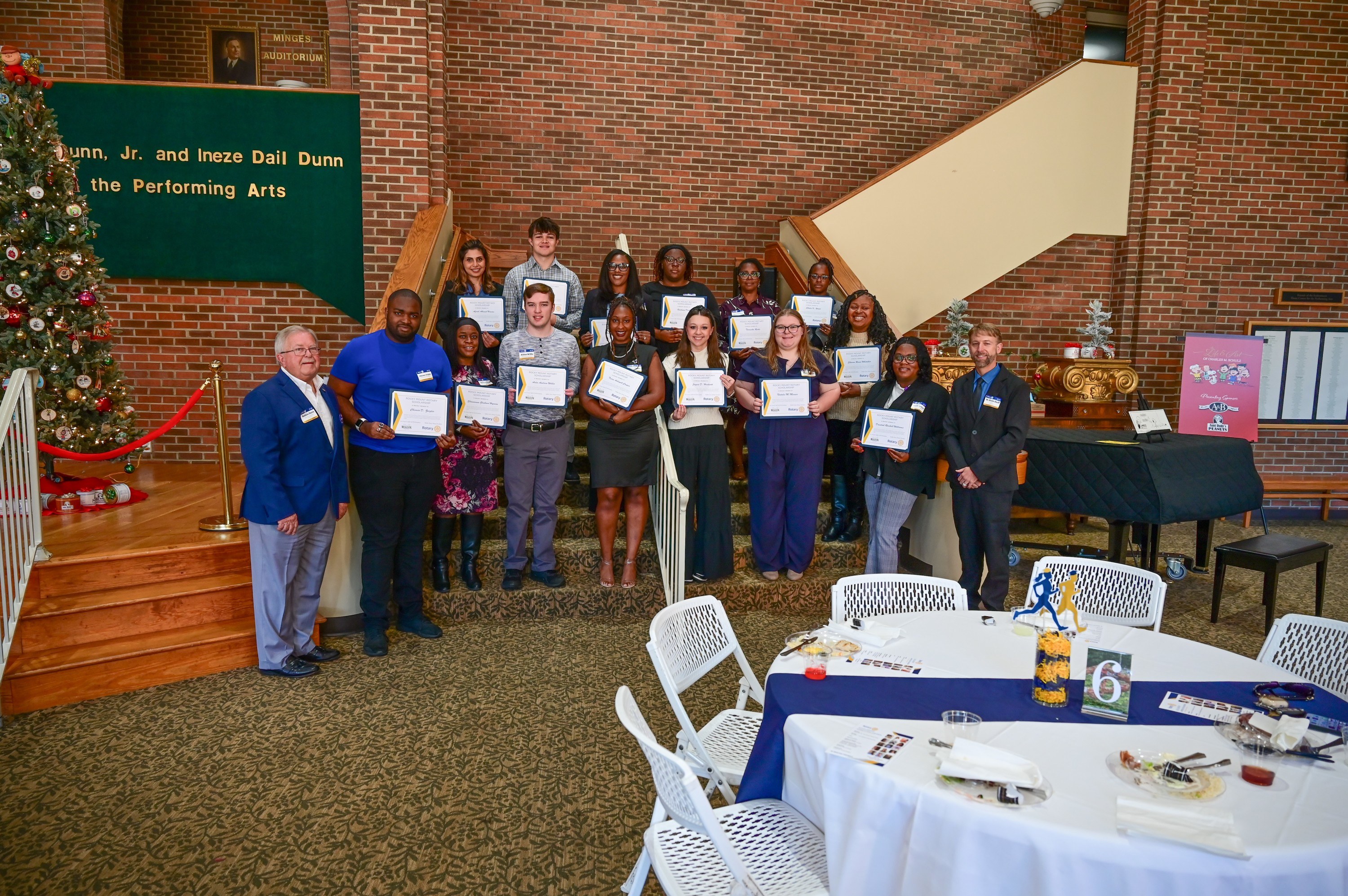 Fourteen students were recognized as scholarship recipients: Caleb Allen, Emory Bunn, Aliyah Cooper, Victoria Dickens, Jaycie Hadnott, Afrah Hasan, Shawanna Hyman, Natalie Messer, Tarnisha Ricks, Shala Wade, Sharon Whitaker, Danitha Williams, Aidan Willis, and Chemar Zeigler.