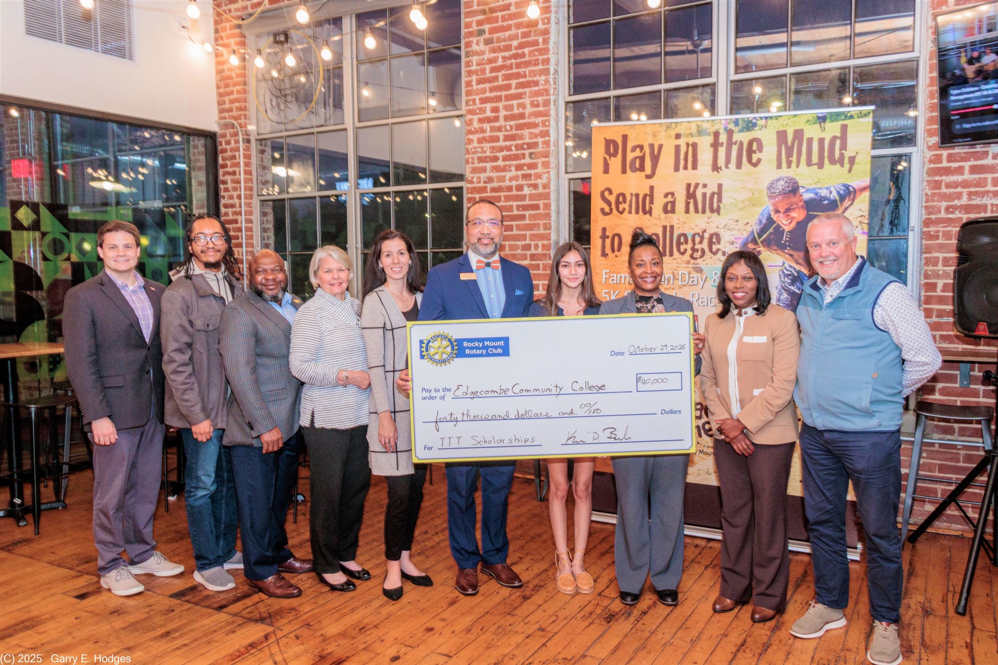 The Rocky Mount Rotary Club presented a check for $40,000 to Edgecombe Community College during the club’s annual Tackle the Tar Celebration.